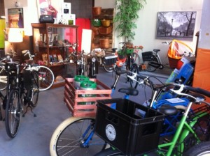 •••It has been almost 1 - 1/2 years and we are absolutely embracing the energy and appreciation and smiles we see and hear from customers and onlookers alike who walk by our store and smile, laugh, point, take photos or even purchase a bicycle or two. A few even lift our bicycles for weight comparison! Most have done research though. Many have purchased our bicycle purely on reviews and research never seeing the bike until delivered to their state. This is not an impulse purchase but rather an investment that will last a life time. Mechanically sound bicycles and style that is timeless. With our new mechanic Josh Boisclair onboard , we bring not only exquisite and functional bicycles to the bay area and beyond but also provide excellent service for repairs, retrofitting or upgrading any bicycle vintage or not. We enjoy and look forward to meeting you and hopefully helping you with your new bicycle purchase or retrofitting your old bicycle that may be sitting in your living room right now with a broken dynamo or missing saddle. Rusty on your Dutch, come on Saturdays when Oscar, my dutchie husband helps out and can sell a bike in full on Dutch if you prefer. You get the feeling you really are purchasing a bicycle from Amsterdam where Oscar’s grandfather had a bicycle store in the Jordaan district in the early 1900′s! For more info on this see this article from Workcycles http://www.bakfiets-en-meer.nl/2010/02/22/the-inventor-of-the-bakfiets/>/